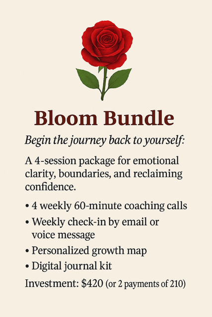 Begin the journey back to yourself. A 4-session package for emotional clarity, boundaries, and reclaiming confidence.